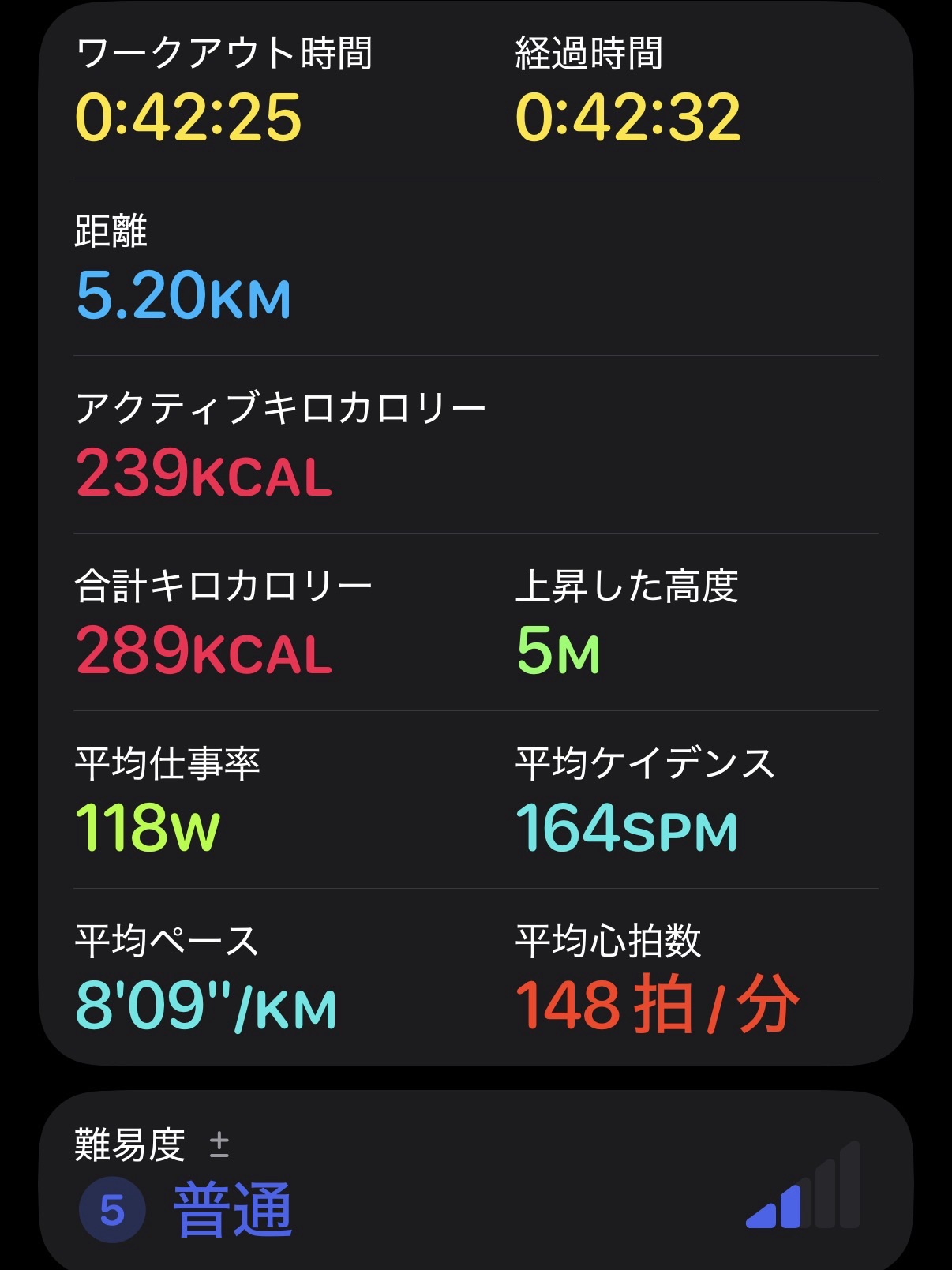 普通に5キロゆっくりと。寒いはずなのに汗だくでした。更年期障害のようです。何が何だか分かりません。