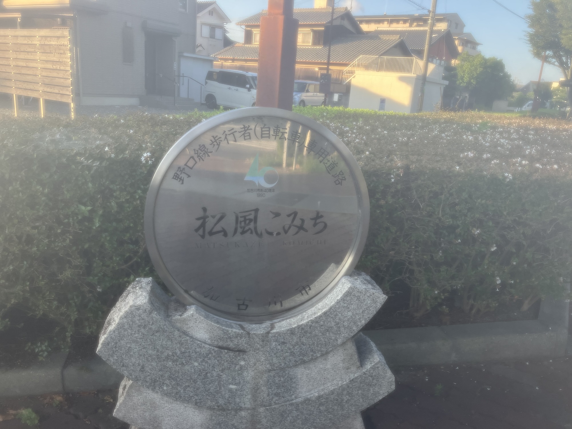 松風こみち ボディメイク X Facebook はてブ Pocket LINE コピー 2025.09.15 早朝に夫を起こしてジョギングに付き合っていただきました。近所に『松風こみち』があり、そこを往復する予定でございます。 名前の通り、こみちのわきには等間隔で松がいるのでございます。夫としょーもない話をしながらですのであっという間に『別府駅』到着したのであります。 そして『ファミリーマート』で元気のでそうなキレートレモンを購入、その場で飲み干し復路へ。 8キロほどのコースとなりました。ゆっくりなので無理なく話しながらで楽しく走ることができたのであります。 夫に感謝。