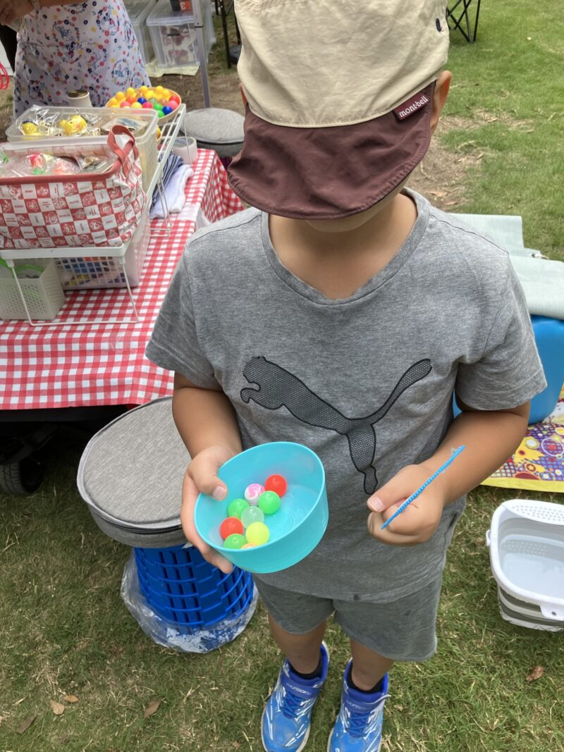 稲美中央公園 趣味の部屋 X Facebook はてブ Pocket LINE コピー 2025.10.13 今日は午前中に稲美中央公園へ行ってきました。 次男がボール投げしたいと言うので広い公園へ。 公園へ着くと 何でしょうか? 行ってみるとイベントのようです。色んな出店が出ています。美味しそうなパウンドケーキや手作り雑貨などなどありました。 熟れ熟れの柿を購入。さらに整体を夫婦で受けました。 次男はスーパーボールすくいがしたいと言い出します。 子供ならではです。前と違って丁寧にすくいます。 たくさん取れて次男は満足です。 良い休日になりました。